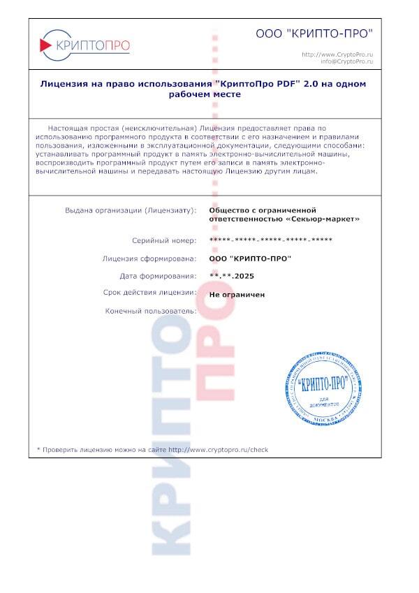 Лицензия КриптоПро PDF именная, выписывается на конечного пользователя после поступления 100% предоплаты. Для работы необходима лицензия КриптоПро CSP.